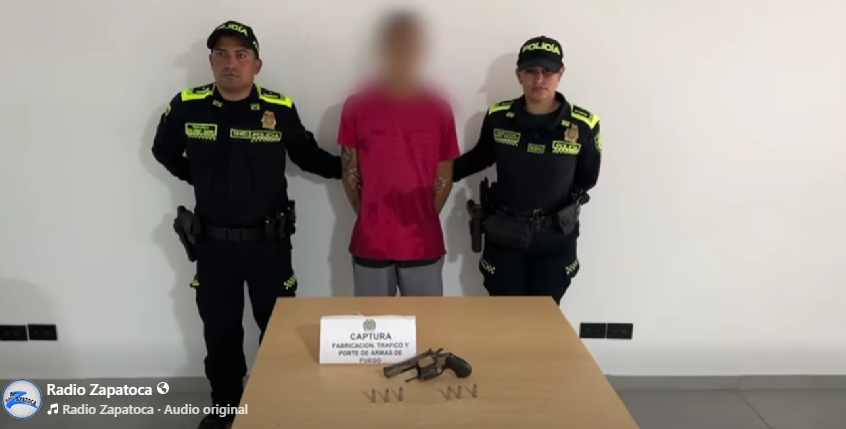 En el sector de la calle 14 con carrera 10, la Estacion de Policía Zapatoca capturó a un ciudadano de 29 años de edad por el delito de Porte ilegal de Armas de Fuego.